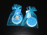 Baus com mini-terço, foi a lembrança dos padrinhos (ficaram muito mimosos), latinhas com mini-terços para os adultos e yo-yo personalizados para as crianças.